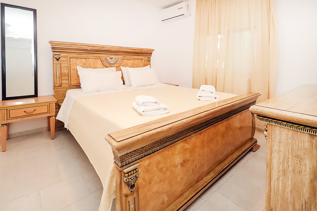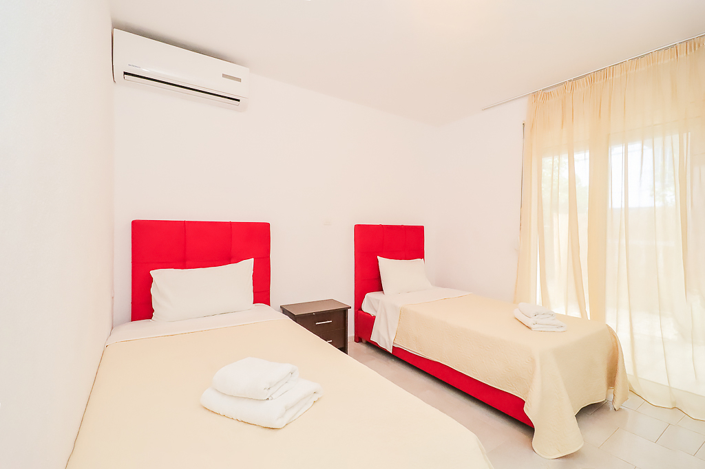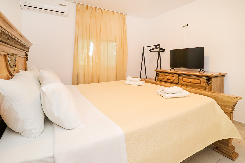 Experience the ultimate retreat for your large family in our spacious two-bedroom bungalow at Greek Pride Seafront Hotel. With ample room for everyone, this bungalow features a well-equipped kitchen and a cozy living area, providing the perfect space for relaxation and bonding after a day of adventure. Step outside onto your private patio or veranda and take in the picturesque views of the lush garden and bustling children’s playground. Situated just 70 meters from the main hotel building, our bungalow offers a tranquil oasis with easy access to all hotel amenities, ensuring an unforgettable stay for your family.